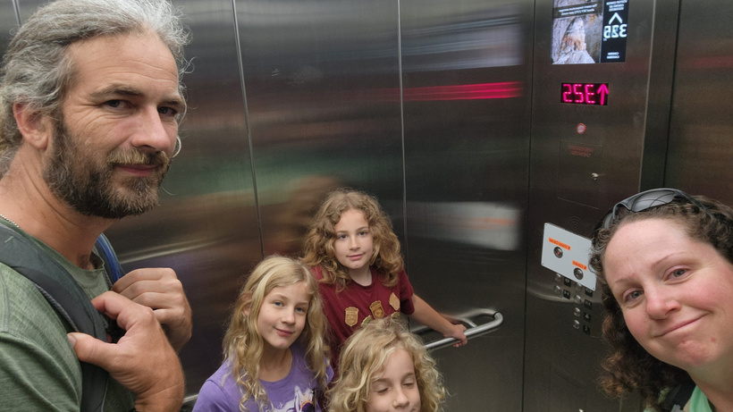 During lunch, Alan and I discussed doing the Discovery Tour with the kids, and we got four out of five on board. Randal and Garrett were up for another fun ride in their packs, Jarek was bouncing with excitement, Arya was enthusiastic, and Evan was a no. I told him to suck it up because the rest of us wanted to do it, and he did. Garrett, after moving a safe distance away, stealthily dropped a bomb in his pull-up. This was discovered only after a vigorous session of tag with his older brothers, at which point the pull-up’s capacity to contain the bomb was exceeded. After going through half a pack of wet-wipes and bagging up the stinky clothes, Garrett smelled much better and we bought our tickets for the Discovery Tour.