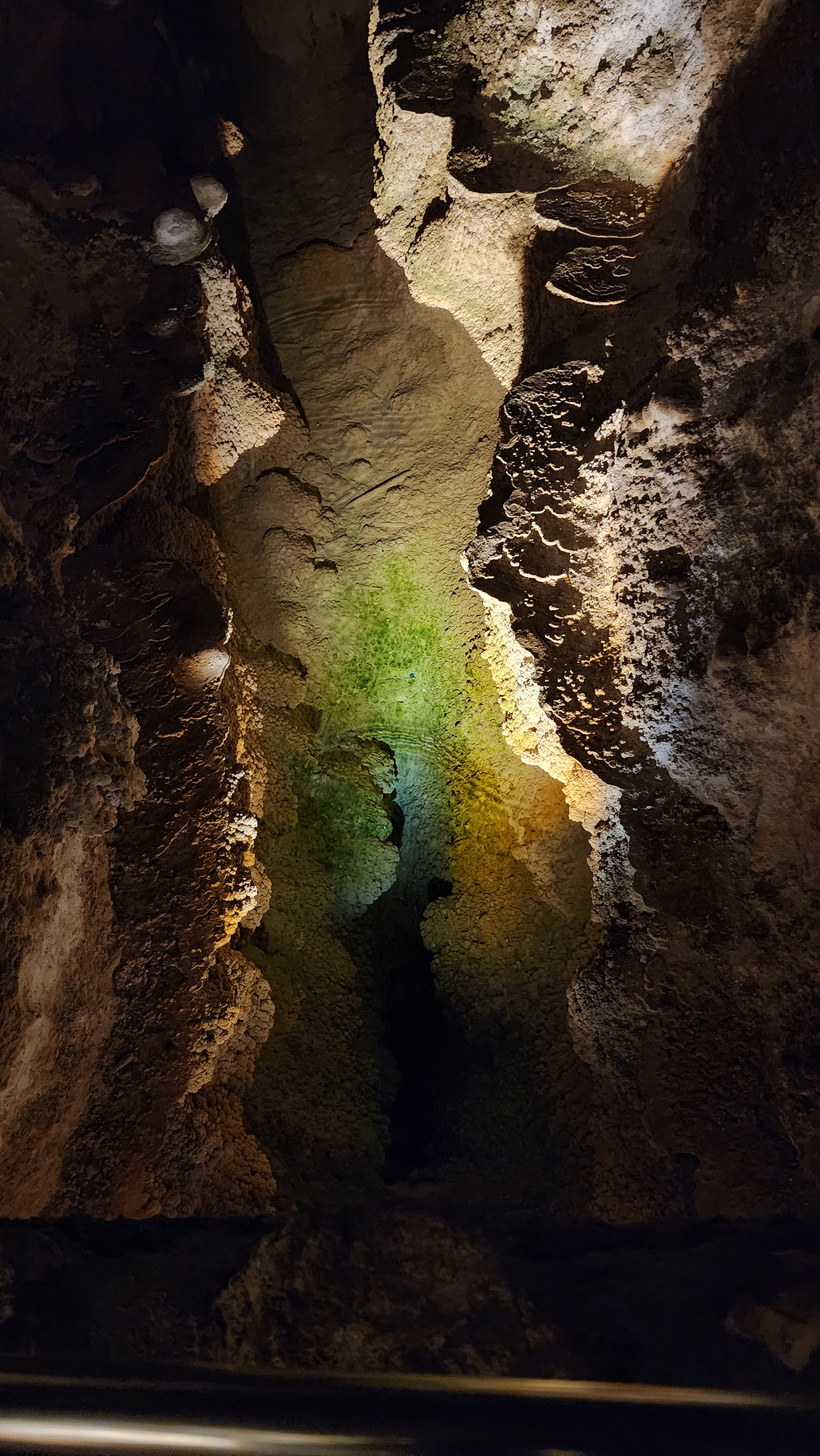 The last room of the cave was a large plain chamber called the Ballroom. It had a large paved area that could be rented out for special events. I told Arya she should have her wedding here someday, but she was not amenable to that suggestion. Maybe one of the boys will make it happen. Jarek was the most excited about the cave tours (Good news, he told me later that he’d consider it.) We moved through the Ballroom to a dead end chamber. The tour ended there with a light show and dramatic music worthy of Jurassic Park.