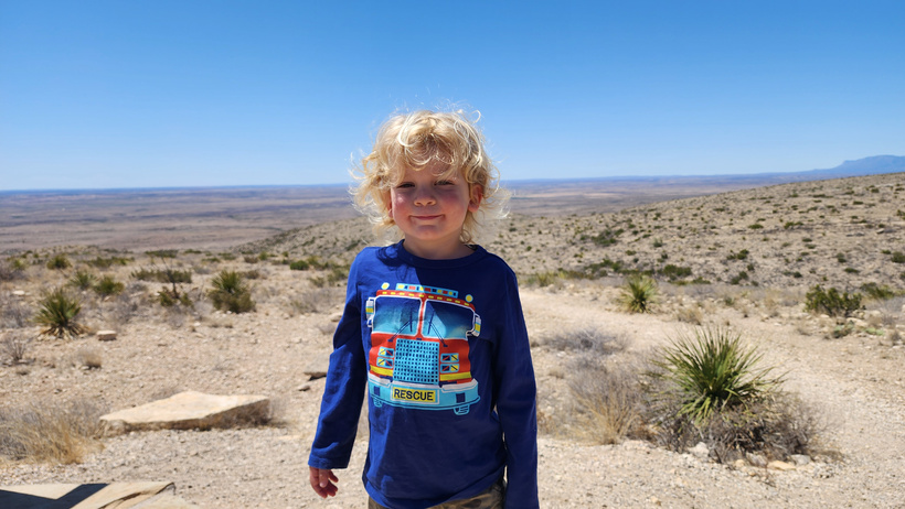 Garrett poses on the overlook from the Carlsbad Visitor Center with the valley behind him.