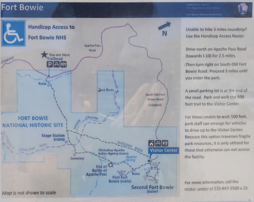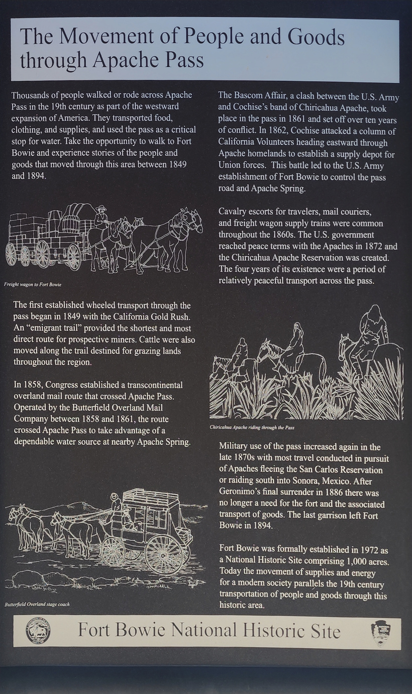 We had originally planned to visit Ft. Bowie NHS when we came west from New Mexico, but we changed the plan due to the required RV repairs. I cut out the visiting days and we pressed on to Tucson, so we could turn in the RV to the shop and get the repairs started.