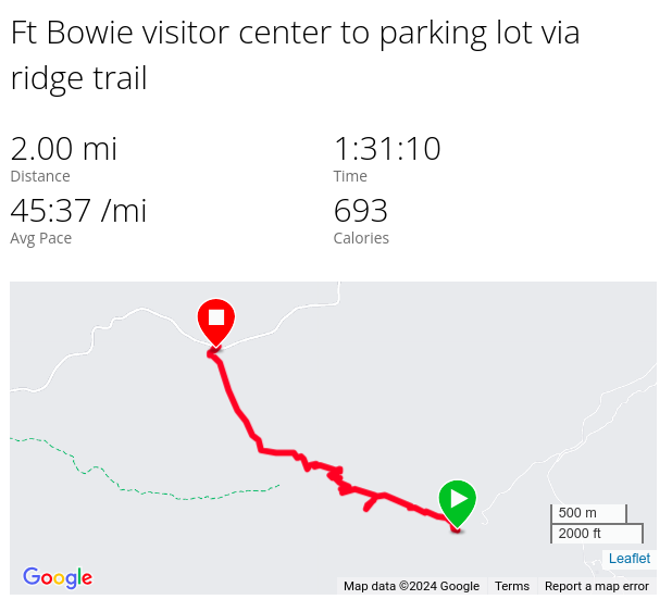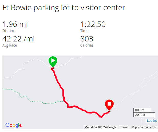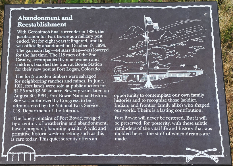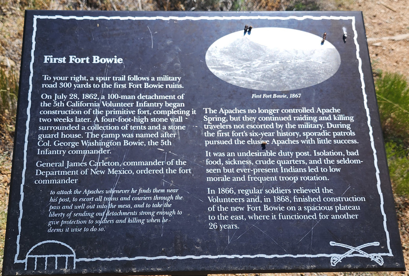 We came up on the site of the first Ft. Bowie, which was abandoned around the time of the Civil War. After the Civil War, a second Fort was re-established up the hill a little ways.