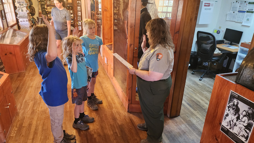 All books checked, the kids did their Junior Ranger oath and were sword in and got their badges.