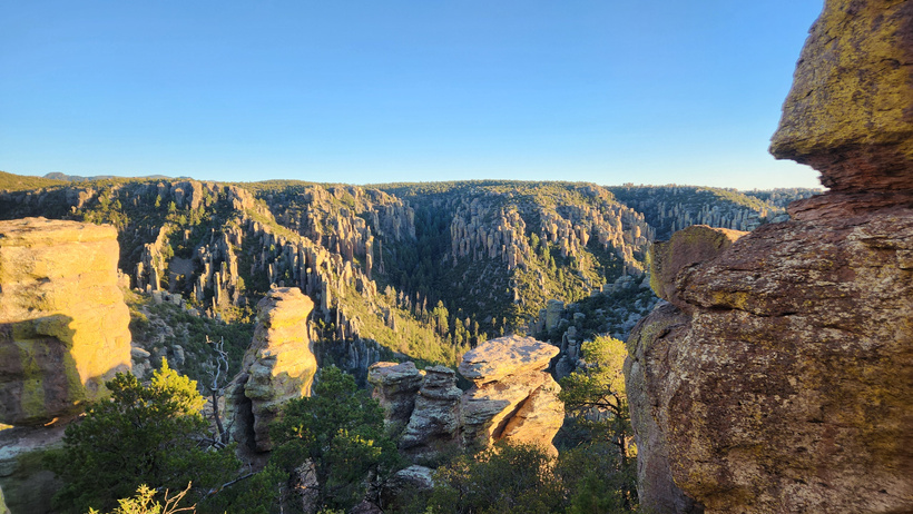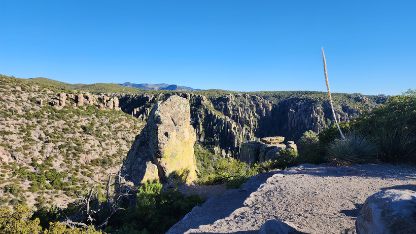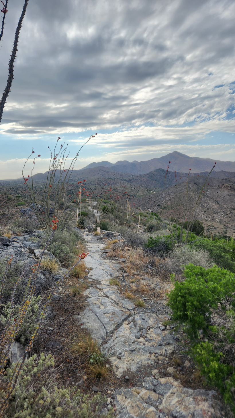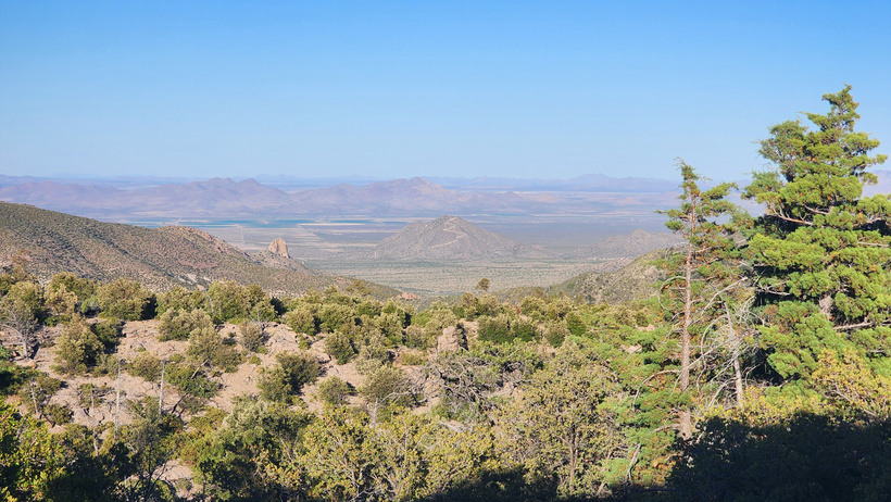 The mountains are referred to as ‘sky islands’ because of their elevation, they get more moisture than the surrounding desert. The wildlife isn’t able to move between the mountains due to the lack of water in the desert below. Fort Bowie is approximately 30 miles away in the picture, in the distant mountain range.