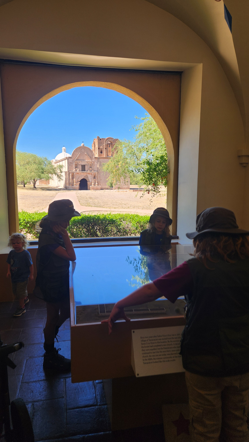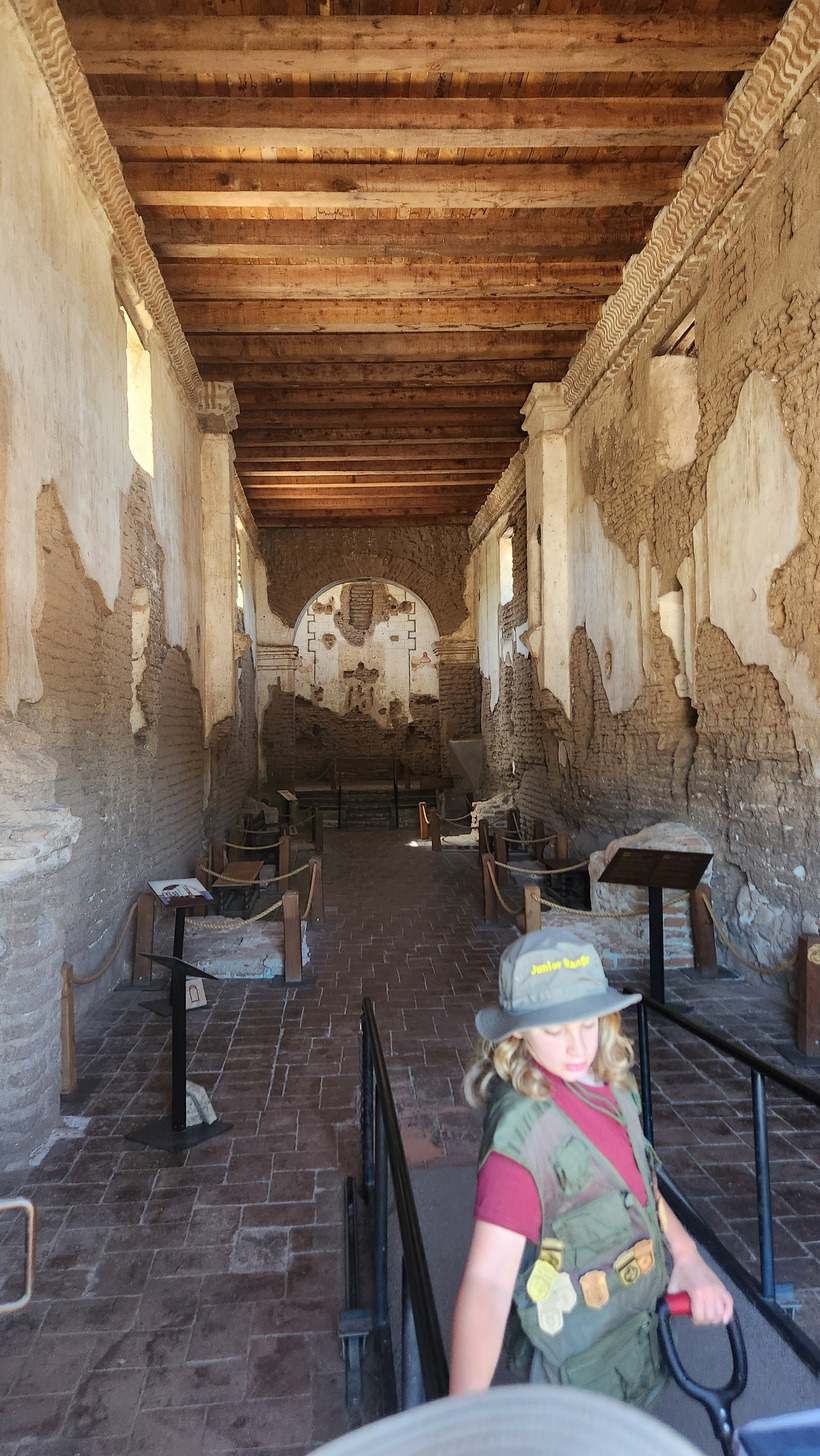 After working on their books for a bit, we took the kids into the museum to do the practical portion of their Junior Ranger activities. The church structure is visible in the backgound.