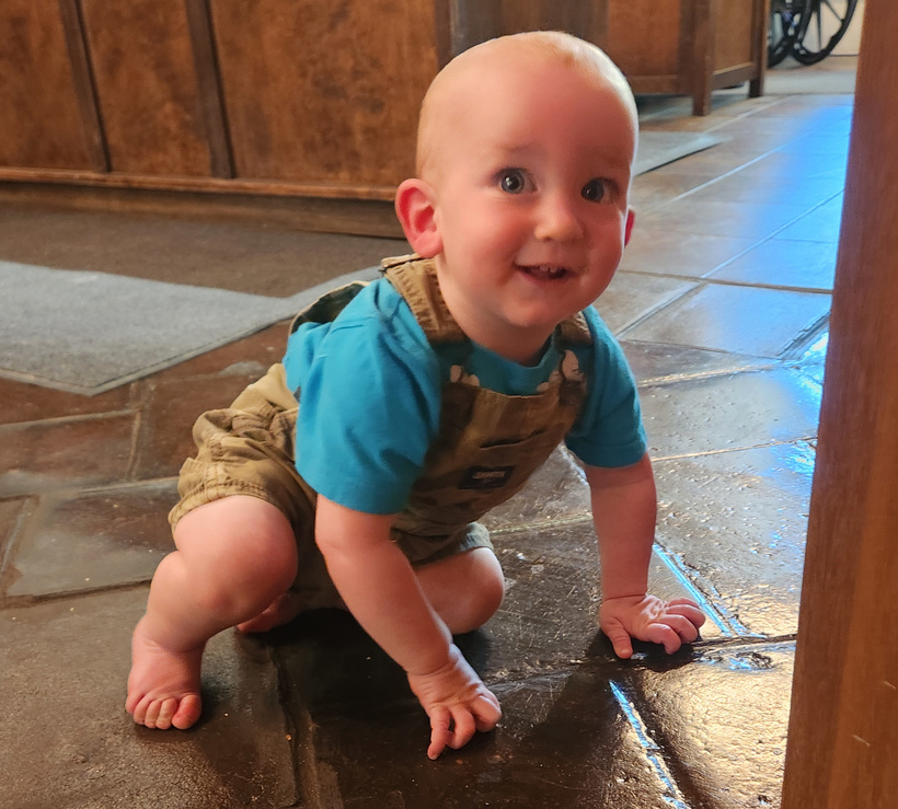 Randal has been saying a lot more words now, and has actively communicated via sign language, e.g. ‘more’ (usually food). His walking has improved significantly and he is also a climber.