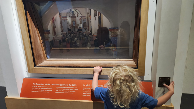 Ducky was very excited about the diorama display where he could turn on the lights. The display recreated the church as it was in the early 1820s.