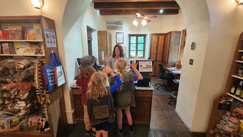 The kids worked on their Junior Ranger badges at the visitor center slash museum. Randal enjoyed some pack free time to stretch his legs.