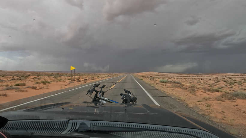 Meanwhile, I was having fun dodging cyclists and thunderstorms on the road.