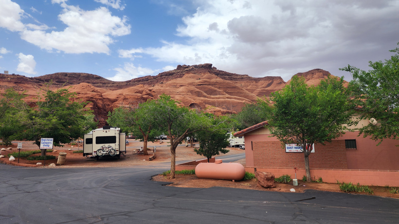 I arrived without incident at the campground, a short time ahead of the storm. The campground is nestled in a valley surrounded by towering sandstone bluffs.