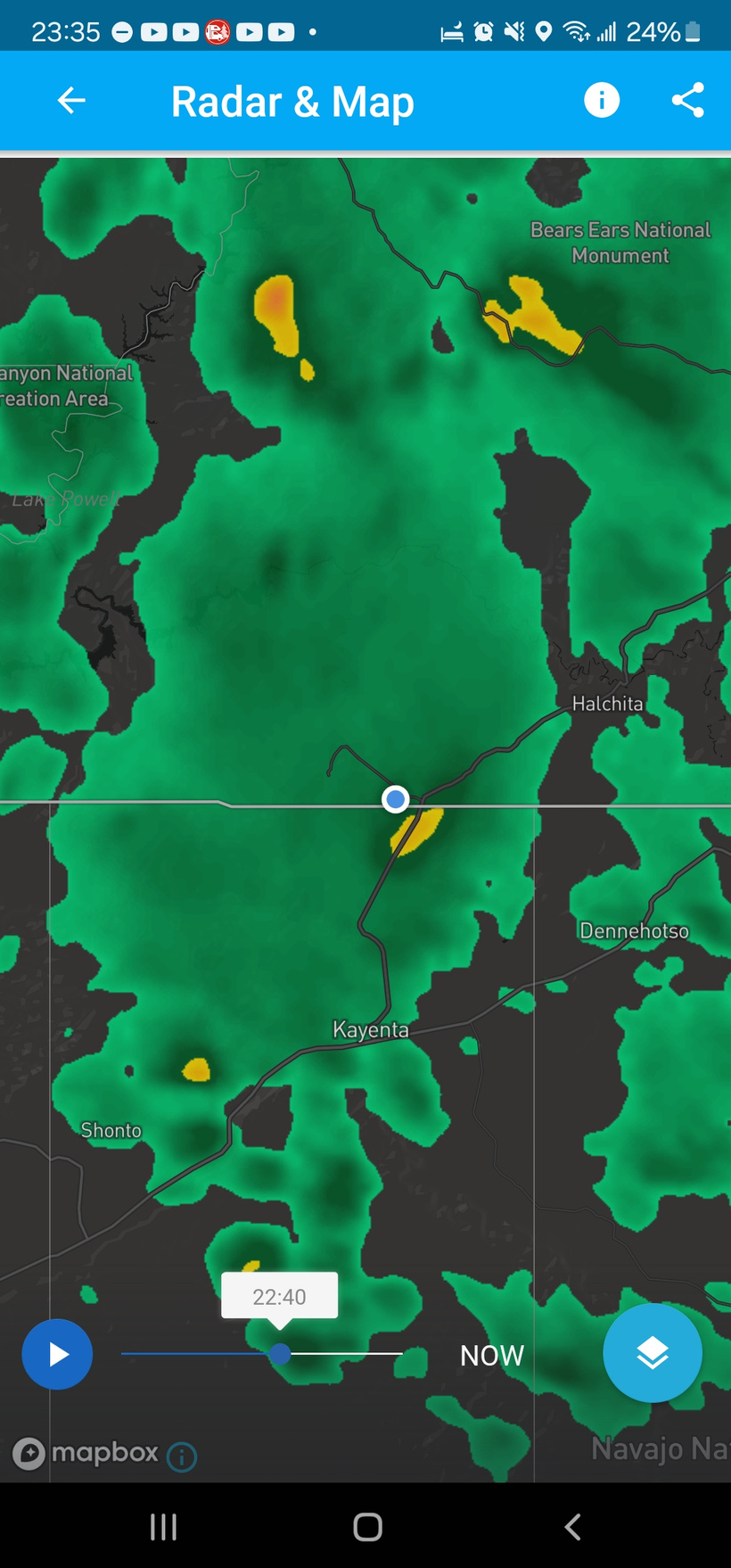 Of course, we got hit by one of the strongest parts of the storm (yellow blob) that night.