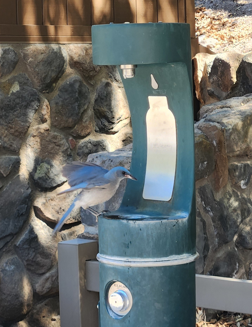 A Mexican Jay gets a drink from the drinking fountain. We got to the visitor center in the afternoon after an hour and half drive.
