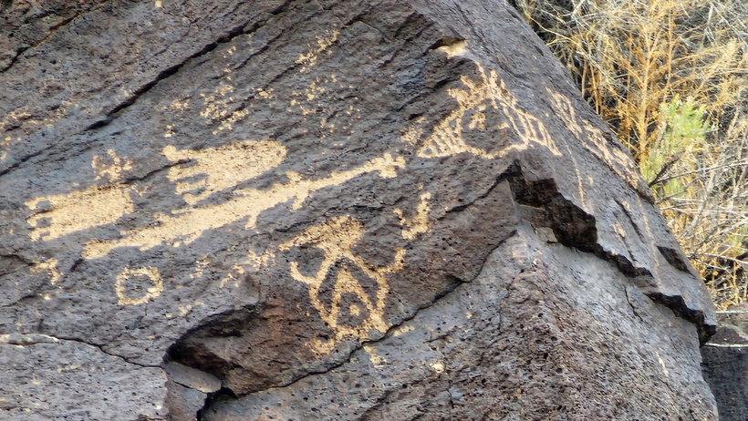 We went to Petroglyph National Monument, which is located on the west side of Albuquerque. This was a different kind of Monument – there isn’t a visitor center per se, but an information center. There are four different trail heads that you can go to. From each trail head, you can hike along the cliff faces and observe the various petroglyphs.