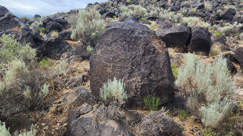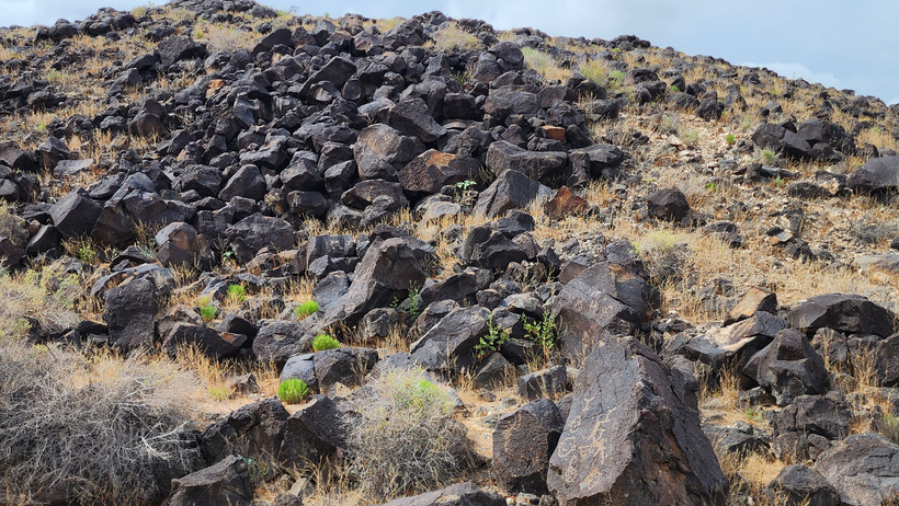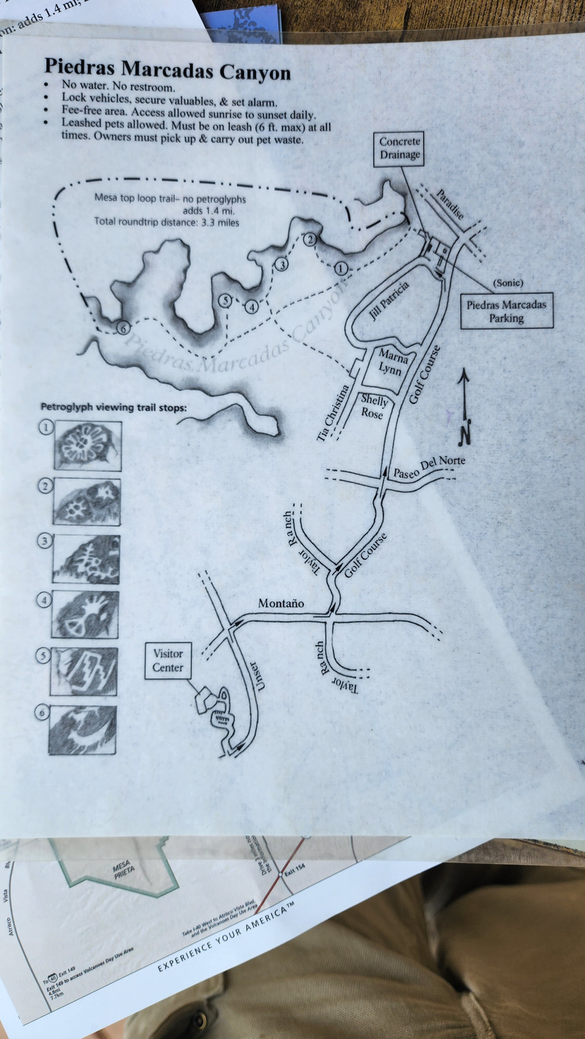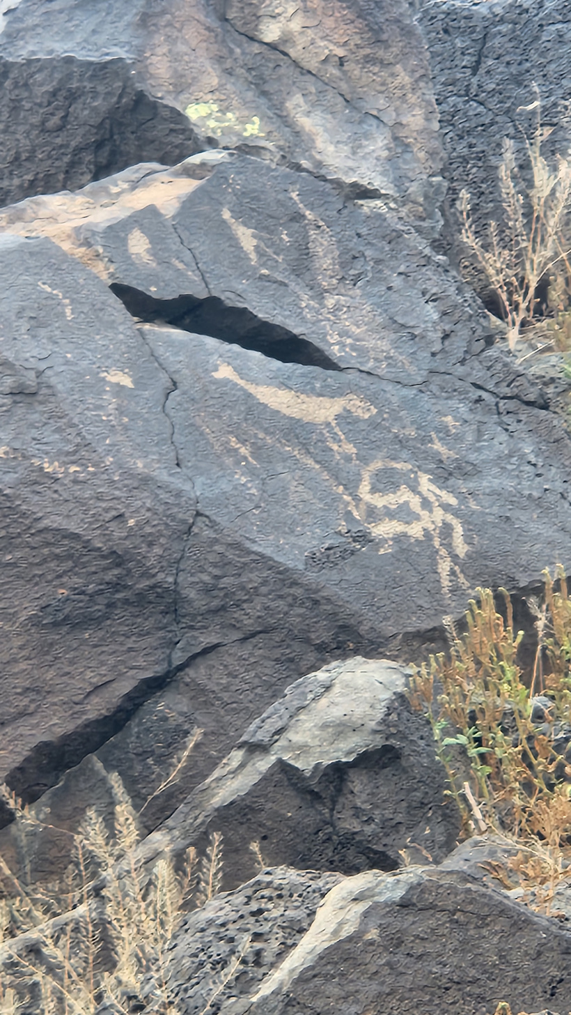 The trail did not generally permit close inspection of the rocks, as it was along the base of the mesa and the carvings were on the boulders up on the hillside. Most of these pictures were taken with the zoom on the phone cameras, so please excuse the weird angles on some.