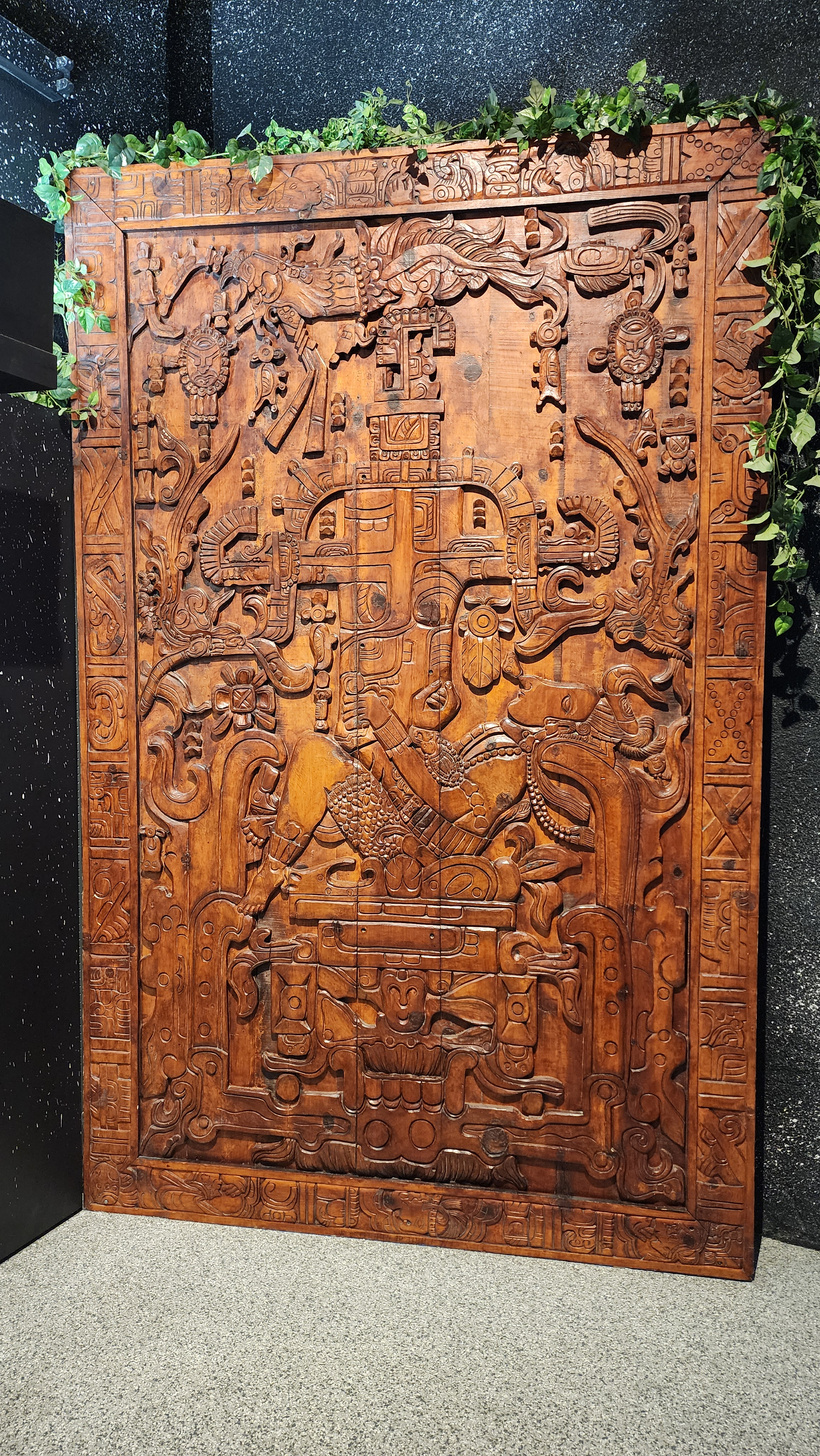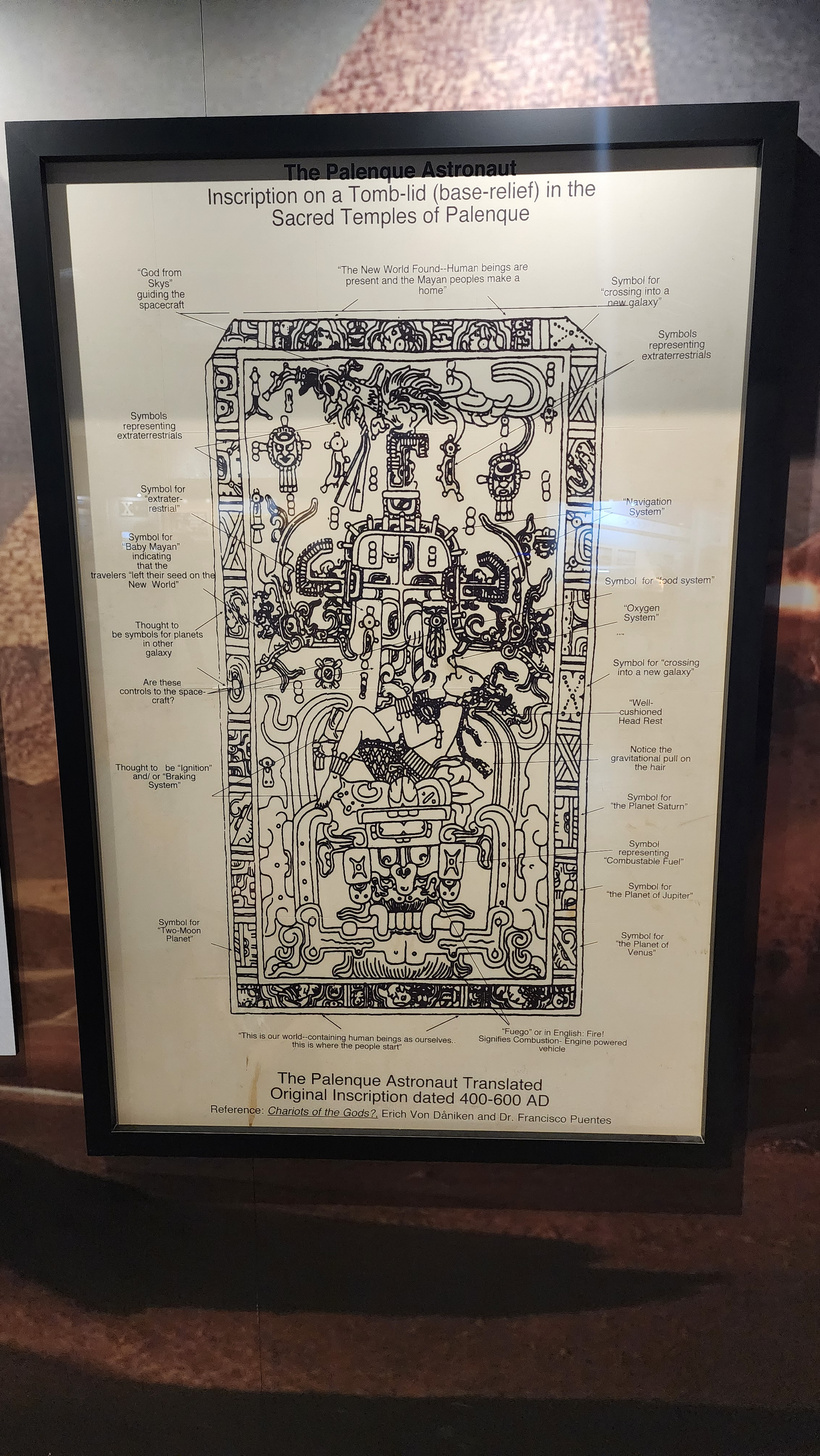 We started off with the Tomb lid of Palenque. The last time we were there several years ago, they had a three dimensional model of the supposed ship. This time, they had a video presentation on it, which the kids enjoyed watching.