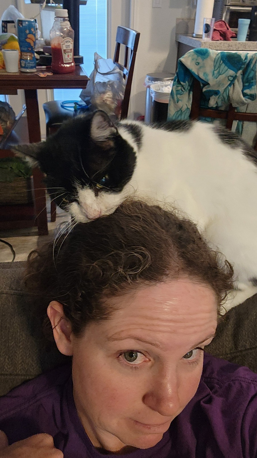 Gambit was being weird and started nomming Meagan’s hair. He’s a weird cat.