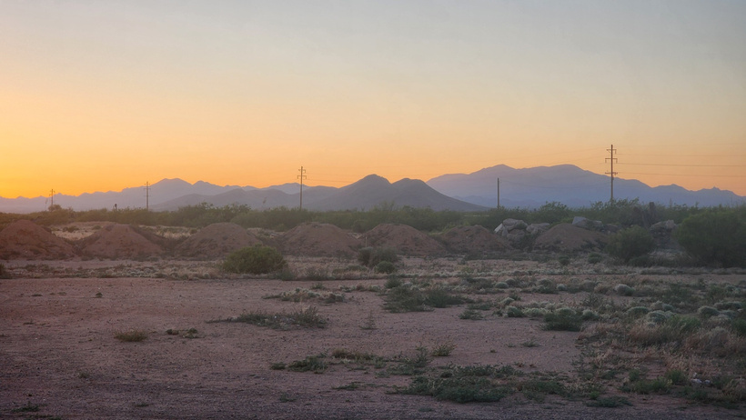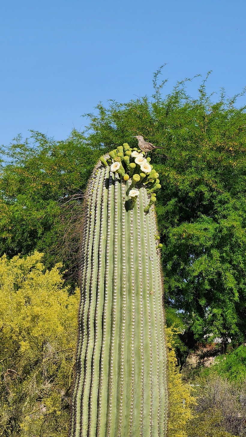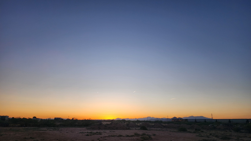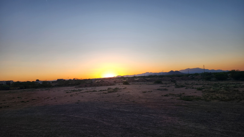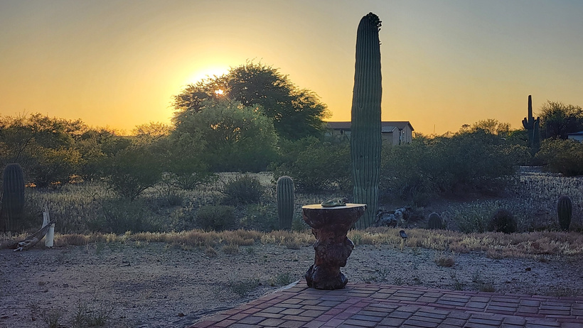 Sunset on the evening of the 9th, with a view of one of the Saguaro cacti that surrounded the yard.