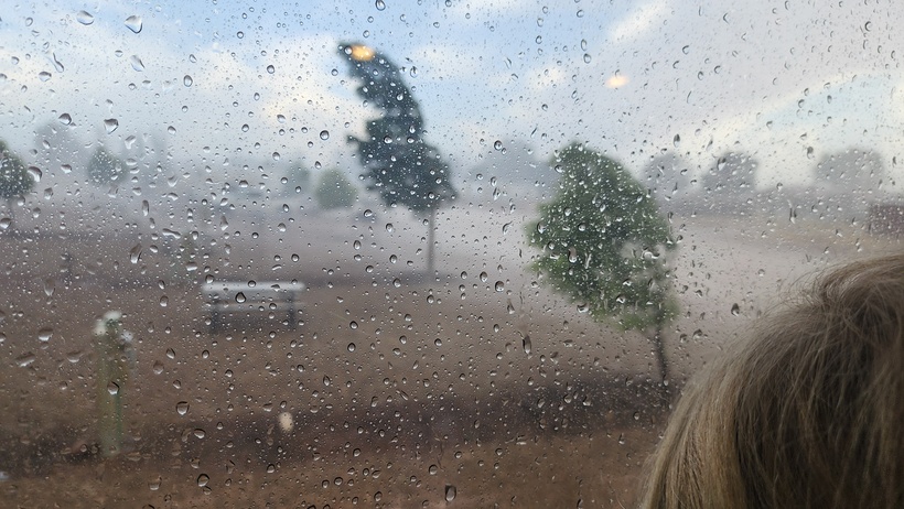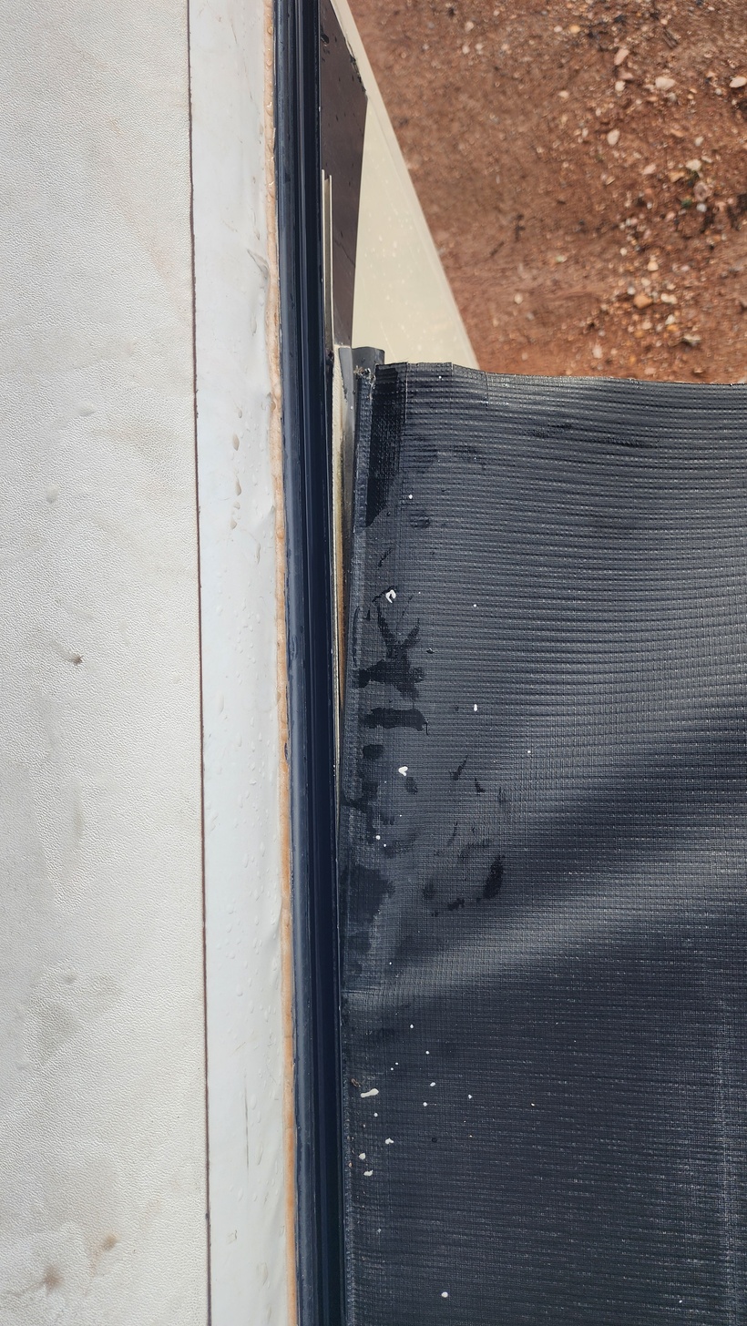 After the storm, had passed by, I went and did a check for damage. I found that one of our awning covers had been partially pulled out of it’s retention slot.