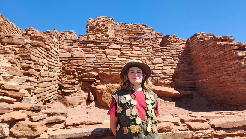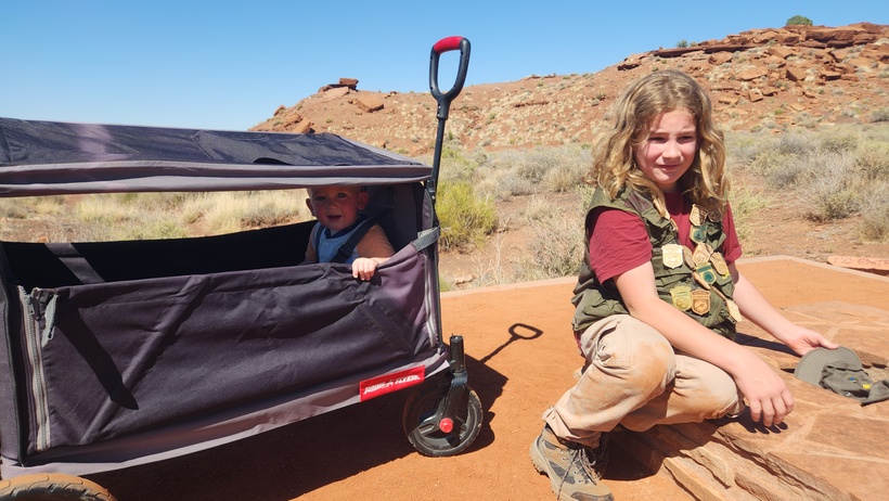 Driving North, you got a good view of the smoke from a wildfire. While I (Alan) drove on to our next destination, Holbrook, AZ and the Petrified Forest, Meagan took Jarek, Arya, and Randal on a detour to Walnut Canyon National Monument.