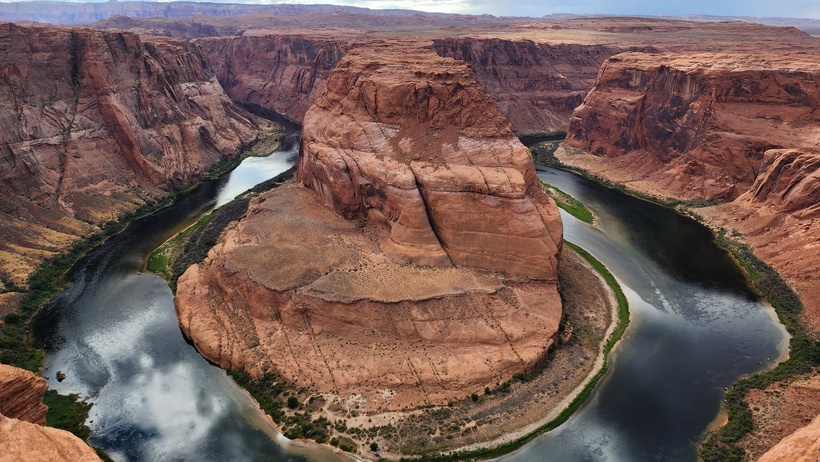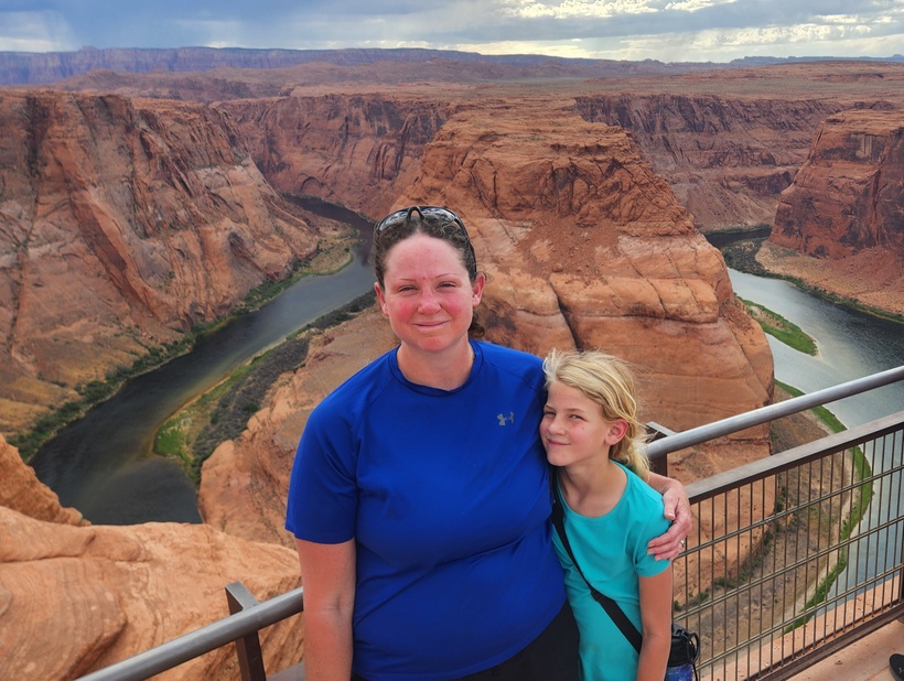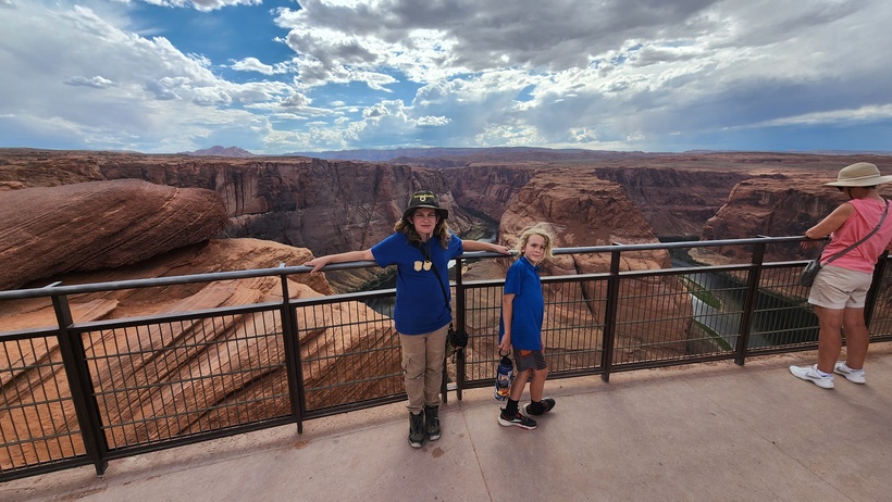 After they finished their Junior Ranger books, we drove out to Horseshoe Bend. This was a short hike from the parking area, about a mile or so. It was very hot and we took our time. It was a nice view of the river and the Bend. We were able to see some kayakers or rafters setting up camp on the beach below us.