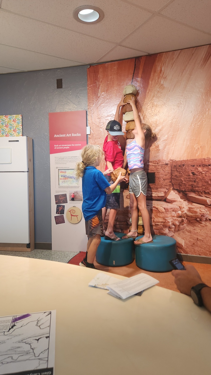 We went to the Visitor Center, which is just down the road from the campground. It was busy, but not as busy as Zion. The kids did their books and got their badges. We learned in the museum that the whole area of Utah and parts of Colorado and Arizona, referred to as the Grand Staircase, is connected through geology (NPS, Wiki).