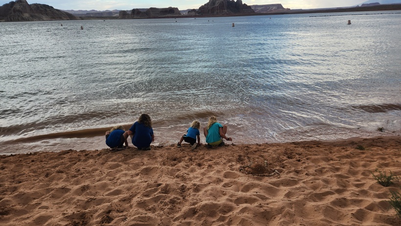 After Horseshoe Bend, we drove over to the Lake Powell Rec Area and found the swimming area. It was late by the time we got there, but the kids did enjoy putting their toes in the water and playing in the sand a little bit before a storm came in and we headed back for the 2 hour drive back to our campground.