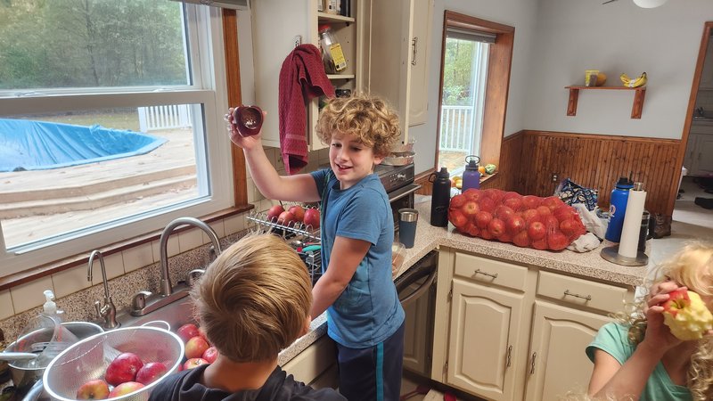 Today we processed some apples into homemade apple cider.  We combined the event with a Cub Scout requirement for the Bear Den.  The kids had a lot of fun sorting the apples and removing the bad apples from the bunch.  This was a smaller batch than what we did last year, due to the upcoming move.  Last year I made 15 gallons of cider which I fermented into hard cider, on top of some additional regular cider.